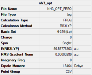 Item Value Threshold Converged? Maximum Force 0.000005 0.000450 YES RMS Force 0.000003 0.000300 YES Maximum Displacement 0.000012 0.001800 YES RMS Displacement 0.000008 0.001200 YES Predicted change in Energy=-9.075210D-11 Low frequencies --- -11.5223 -11.4866 -0.0029 0.0246 0.1415 25.6160 Low frequencies --- 1089.6618 1694.1735 1694.1738